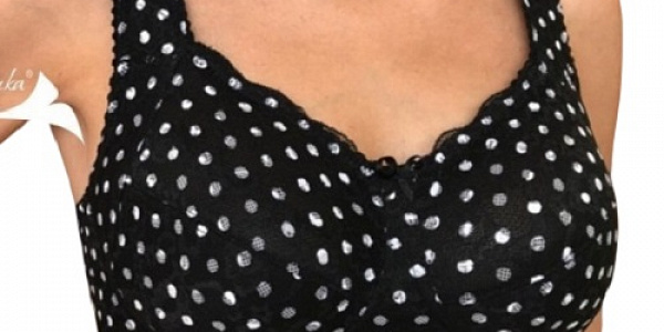 Бюстгальтер Ниночка для фиксации экзопротеза 70-18 черный с белым горошком