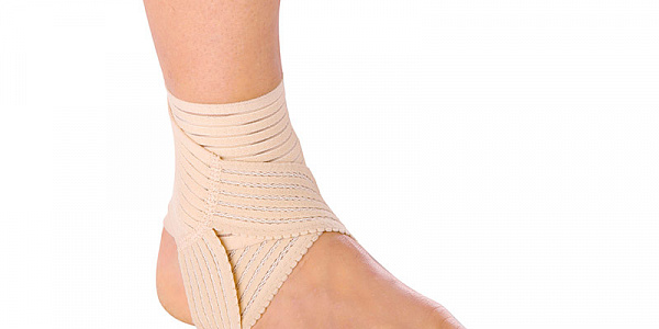 Накладывается «восьмеркой» вокруг голеностопного сустава.